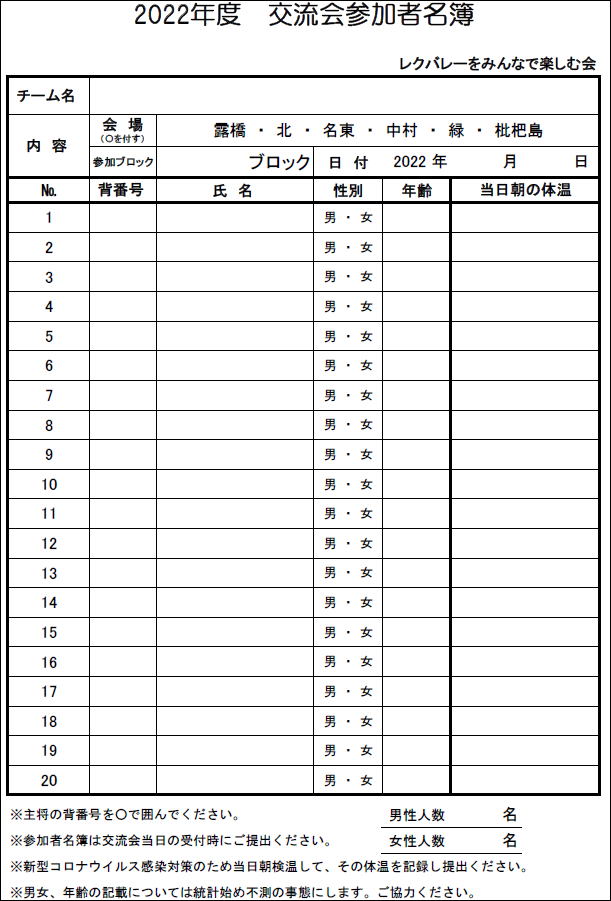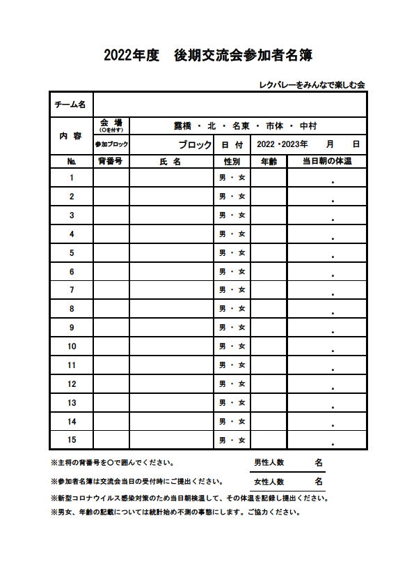 2022.06.12 2022年度交流会 コロナ感染防止対策等諸注意・参加者名簿