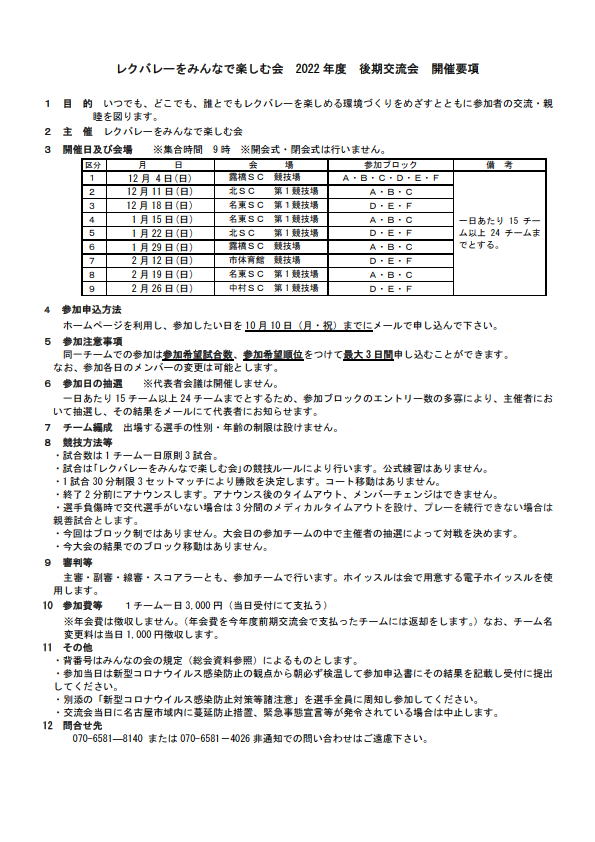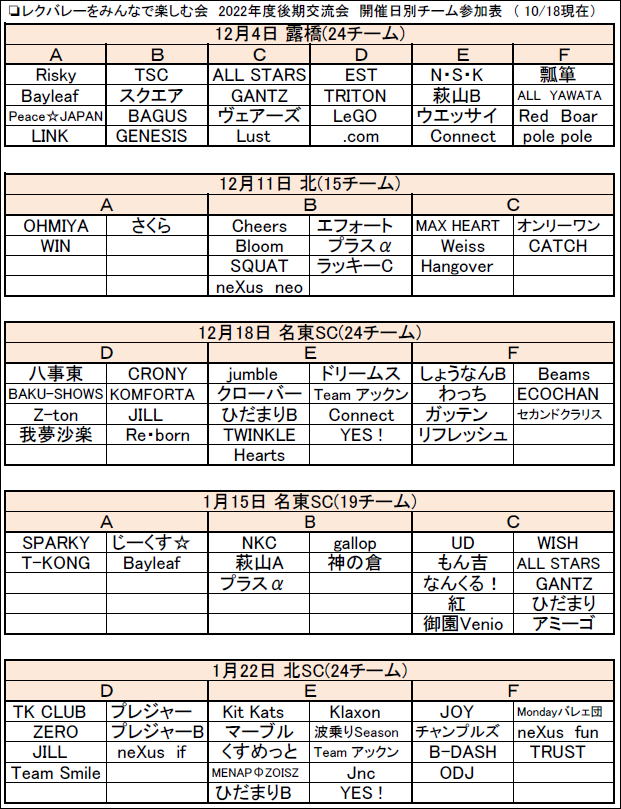 2022.10.21 2022年度後期交流会 試合日程