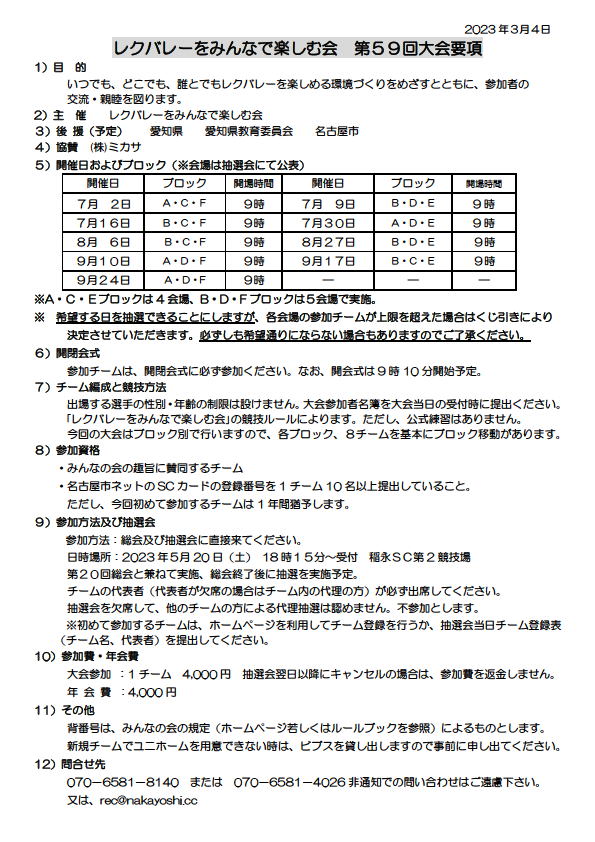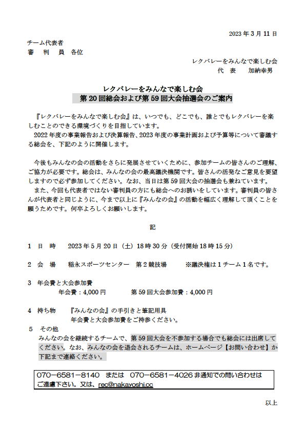 2023.03.15 第 20 回総会および第 59 回大会抽選会のご案内