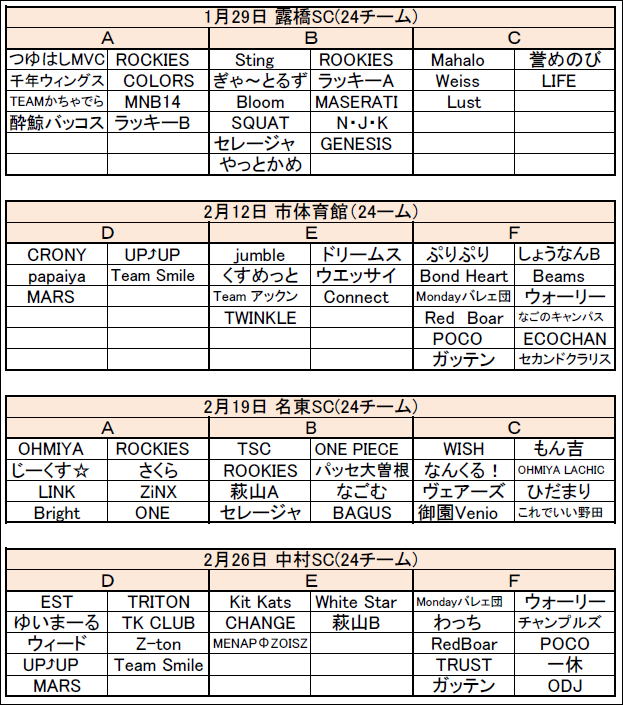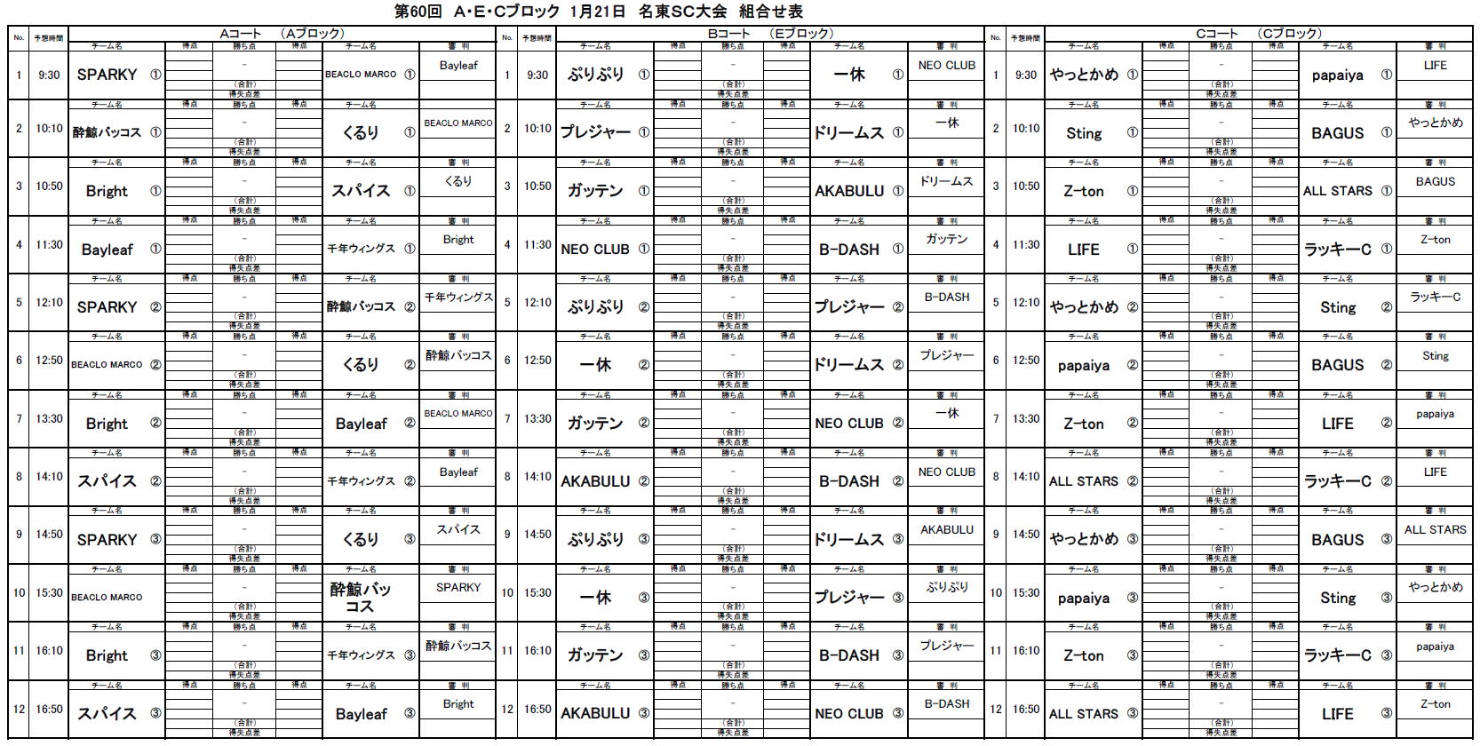 2024.01.21 第60回大会A・C・Eブロック名東SC対戦表のお知らせ