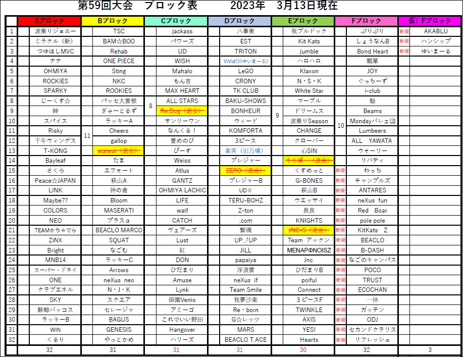 2023.05.25 第59回大会ブロック表のお知らせ