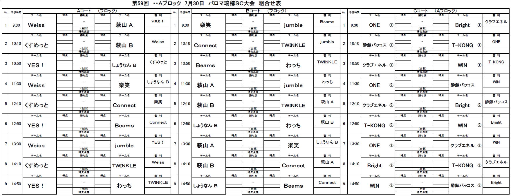 2023.07.09 第59回大会北SC対戦表のお知らせ