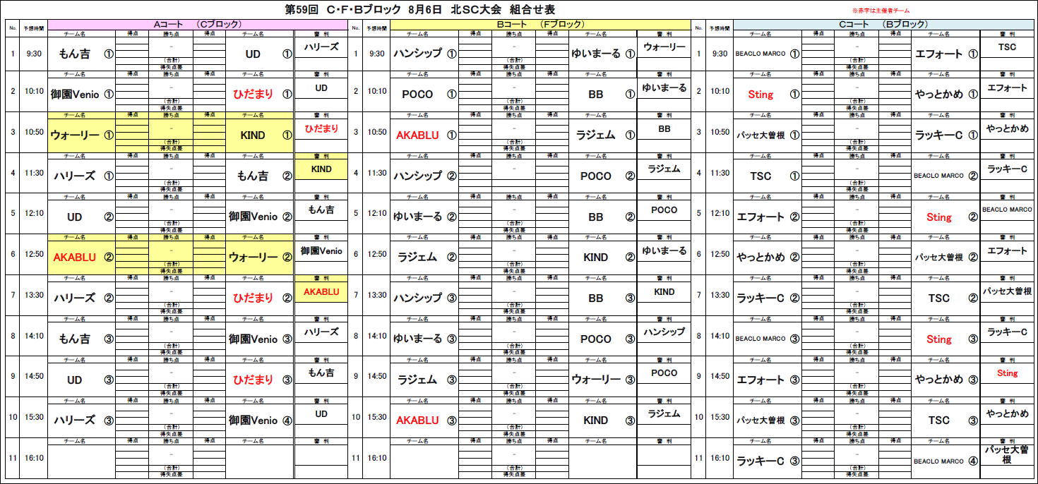 2023.08.01 第59回大会8/6北SC対戦表のお知らせ