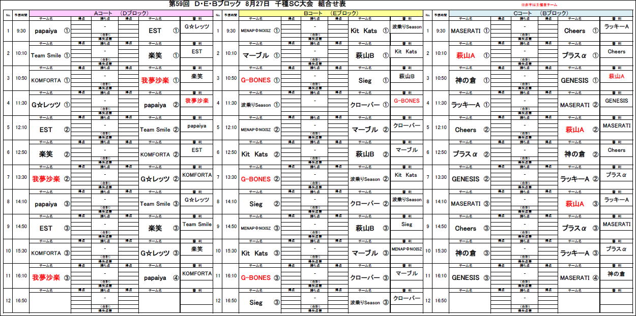 2023.08.16 第59回大会8/27千種SC対戦表のお知らせ