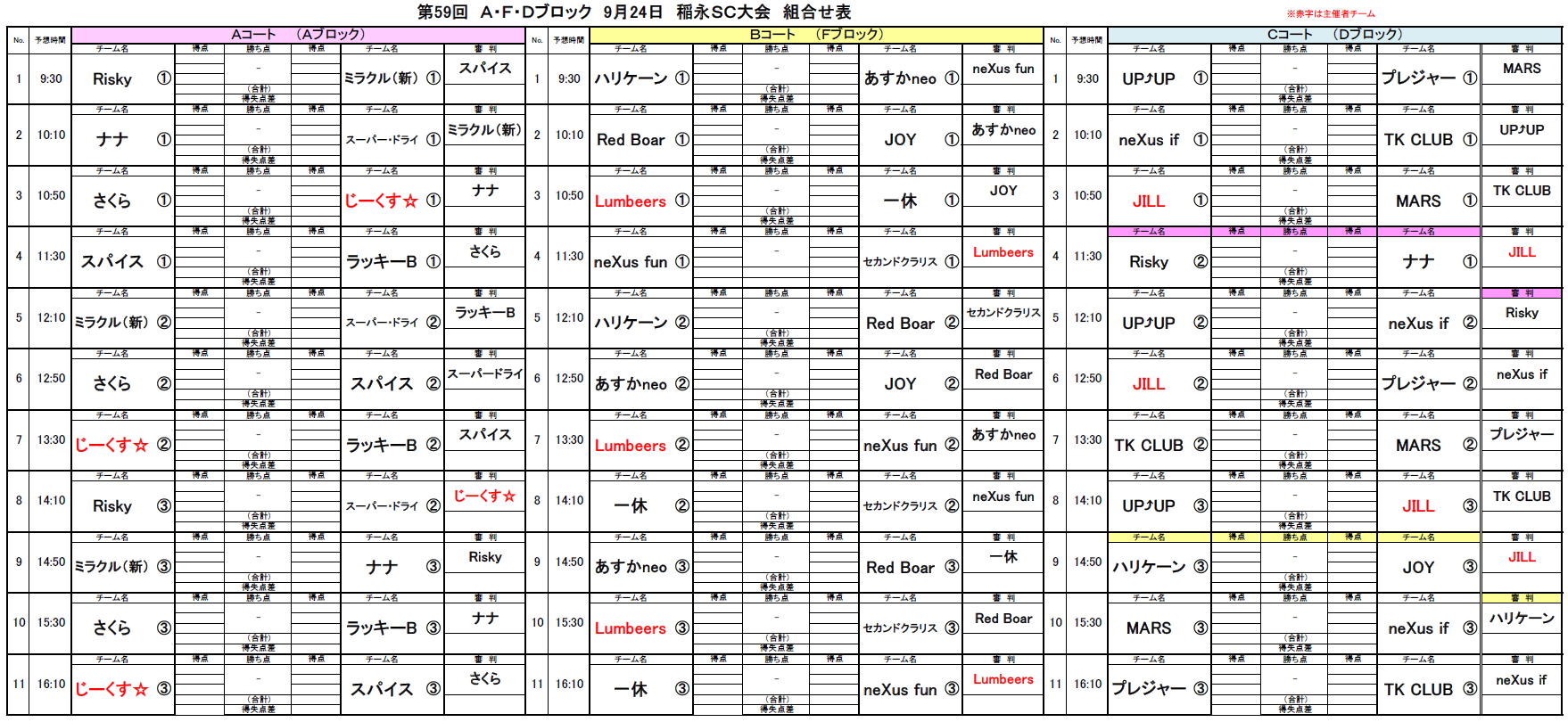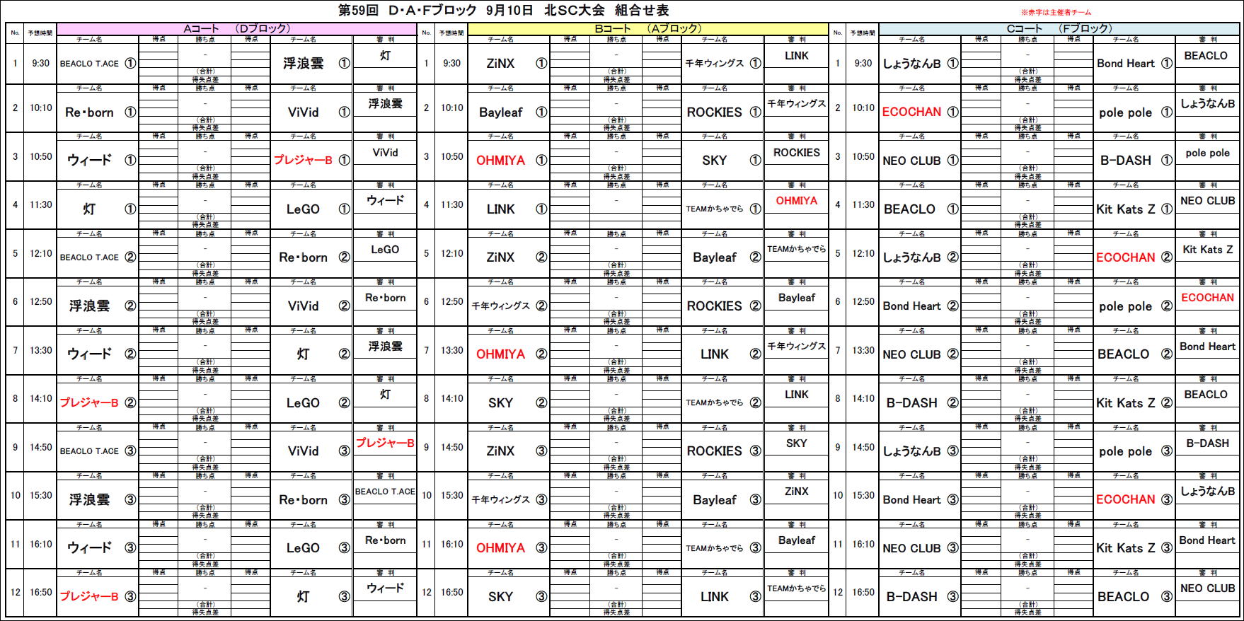 2023.09.01 第59回大会9/10北SC対戦表のお知らせ