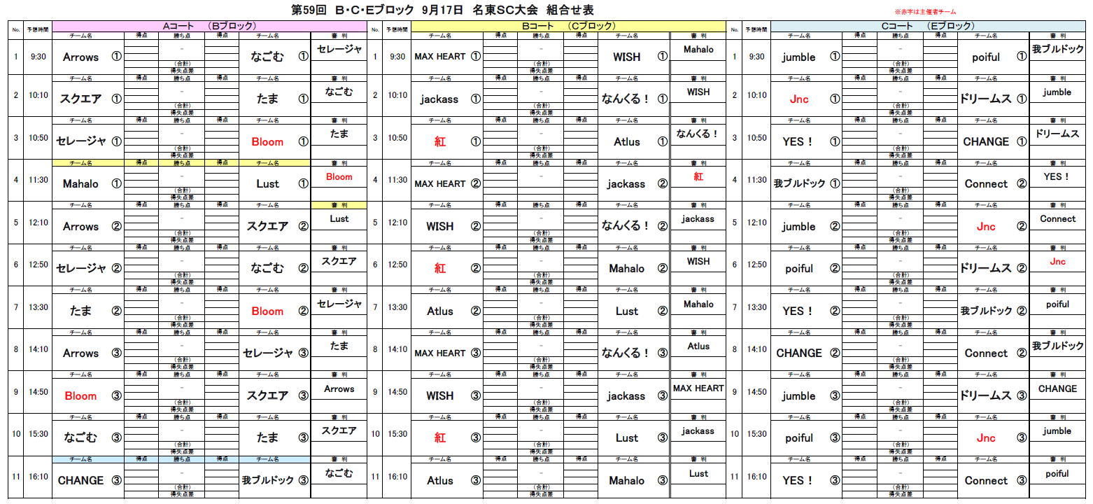 2023.09.09 第59回大会9/17名東SC対戦表のお知らせ