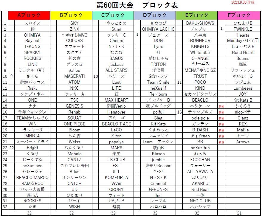 2023.10.02 第60回大会ブロック表のお知らせ