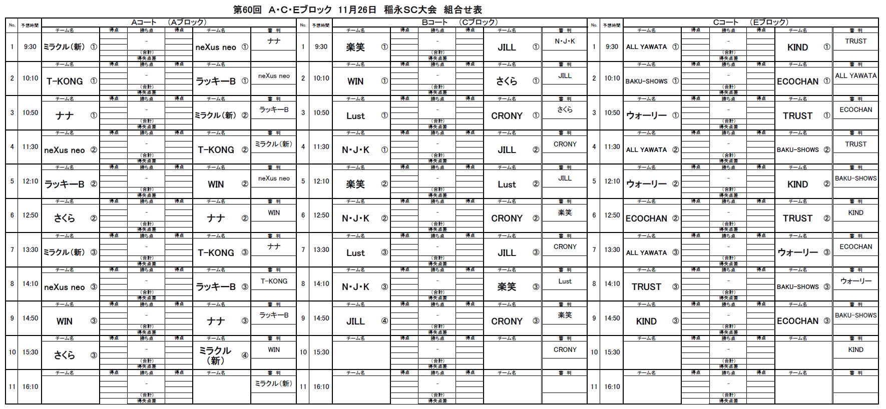 2023.11.26 第60回大会 A・C・Eブロック稲永SC対戦表のお知らせ