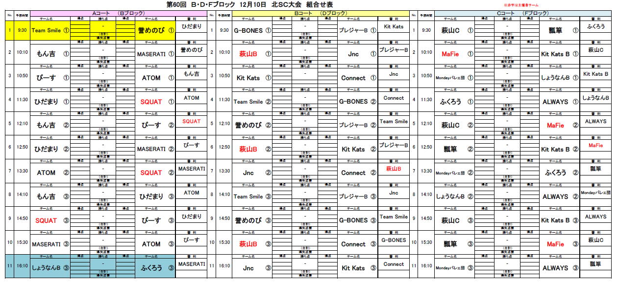 2023.11.30 第60回大会 B・D・Fブロック北SC対戦表のお知らせ