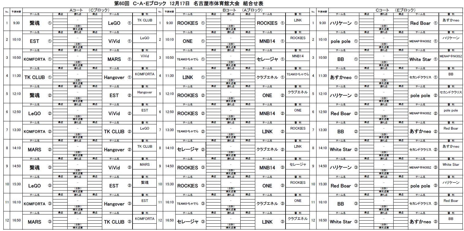2023.12.15 第60回大会C・A・Eブロック名古屋市体育館対戦表のお知らせ