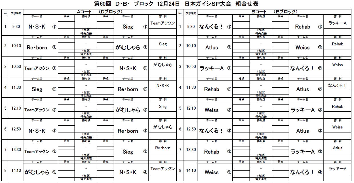 2023.12.19 第60回大会D・Bブロック日本ガイシ対戦表のお知らせ