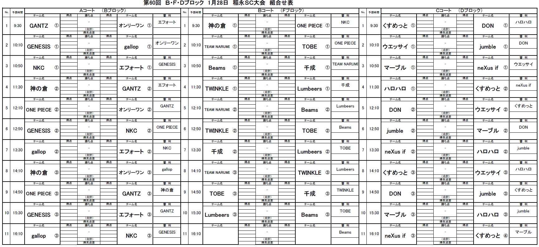 2024.01.28 第60回大会B・D・Fブロック稲永SC対戦表のお知らせ
