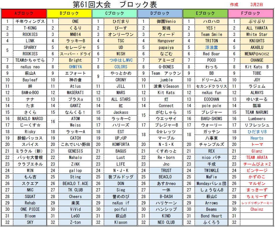 2024.03.02 第61回大会ブロック表のお知らせ