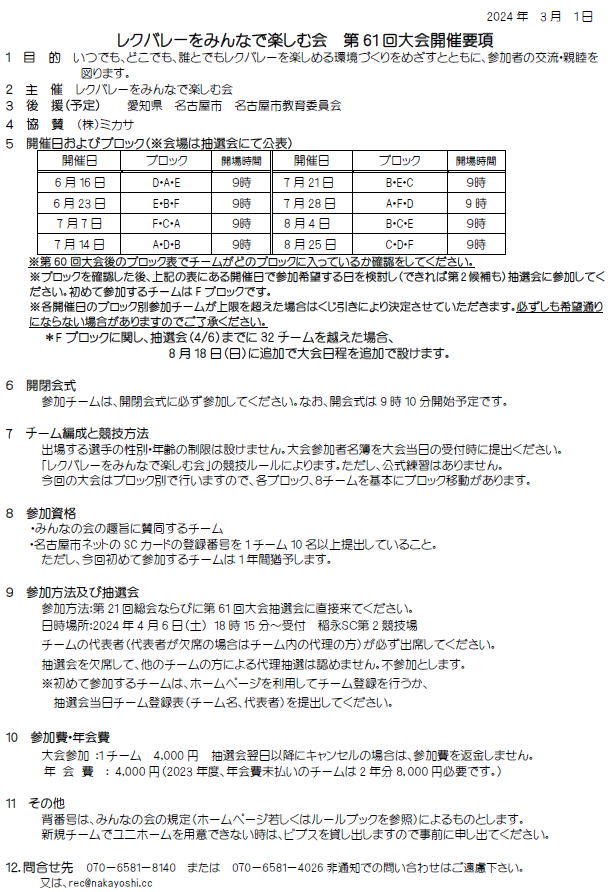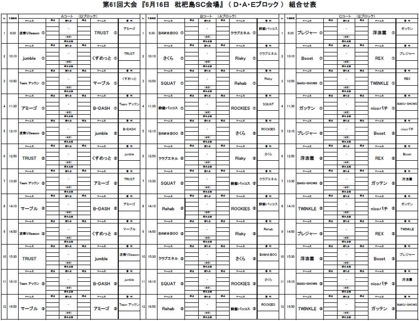 2024.05.30 第61回大会 6/16・6/23対戦表のお知らせ