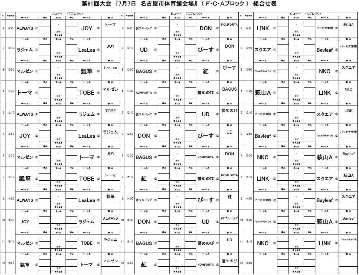 2024.06.29 第61回大会 7/7対戦表のお知らせ