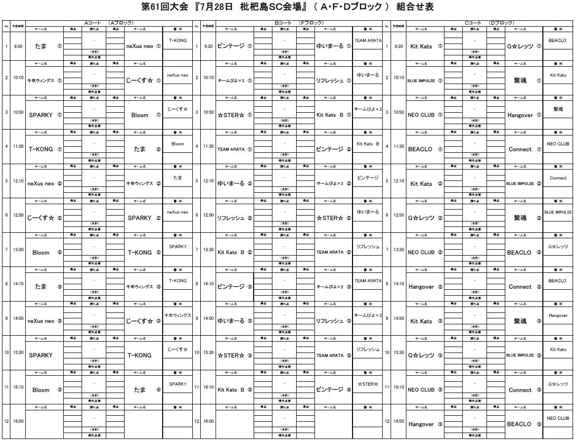 2024.07.09 第61回大会 7/28対戦表のお知らせ