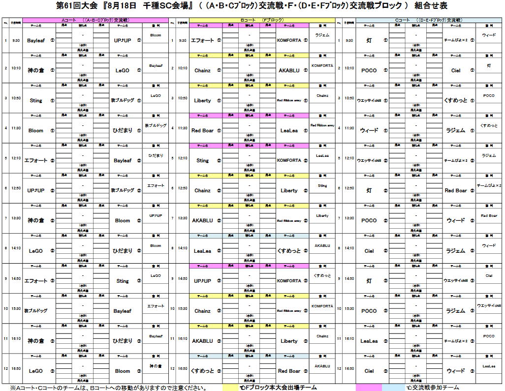 第61回大会 8/18 千種SC Fブロック ・ 交流戦大会 PDF