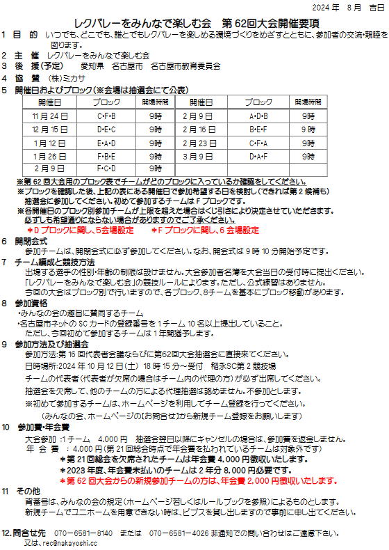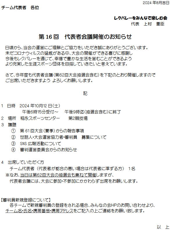 2024.12.03 第62回大会 12/15対戦表のお知らせ