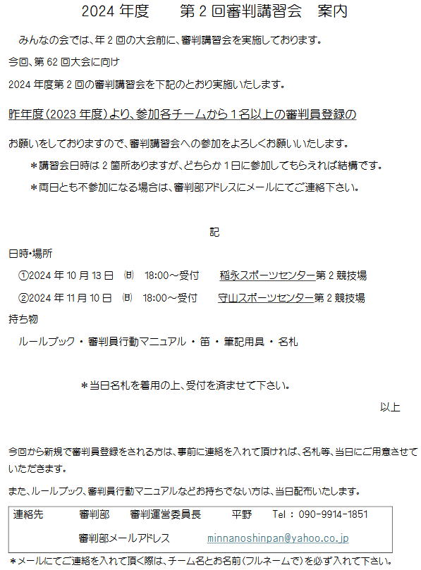 第63回大会 副審・線審講習会案内のお知らせ PDF