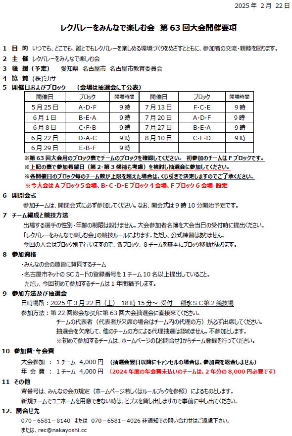 2025.03.20 第63回大会 ブロック表再掲載のお知らせ