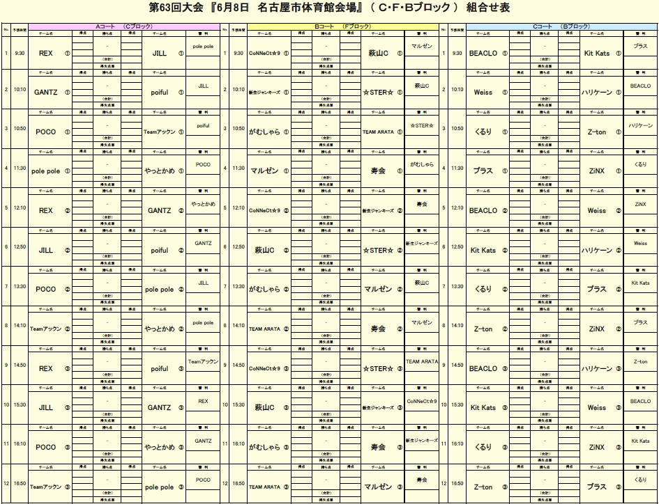 第63回大会 6/08 名古屋市体育館 C・F・Bブロック大会 PDF