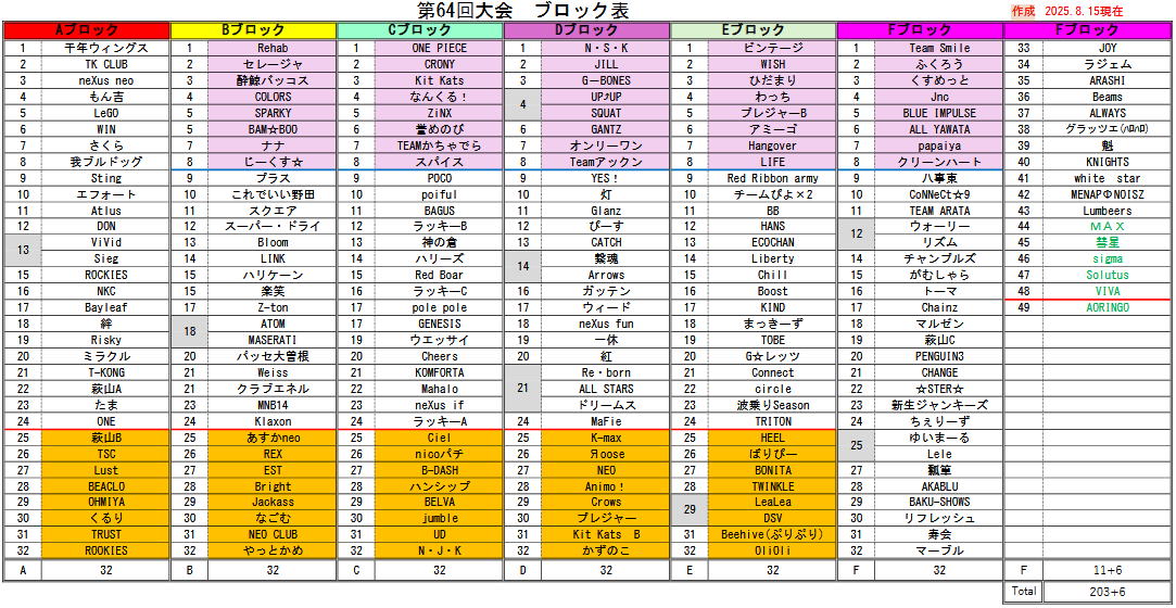 第64回大会 ブロック表のご案内