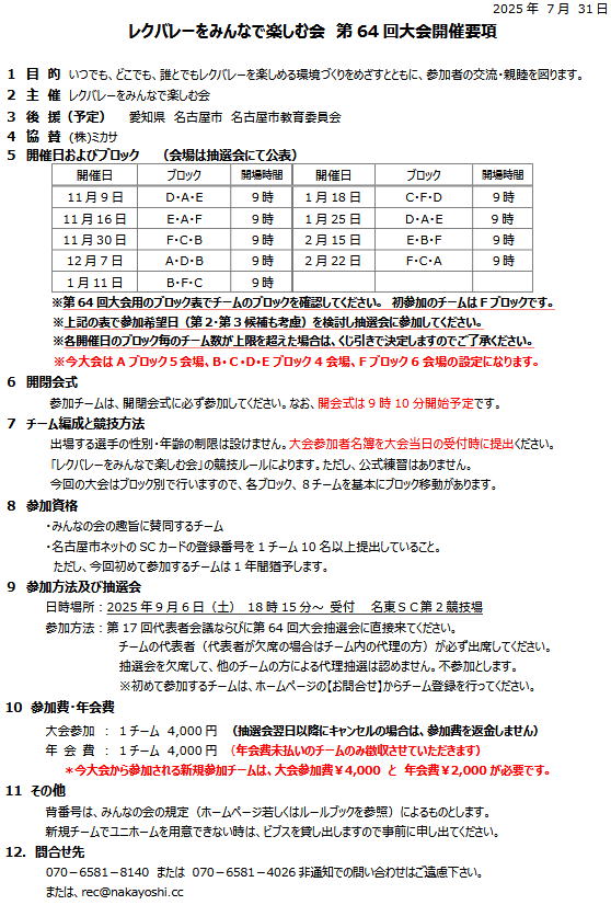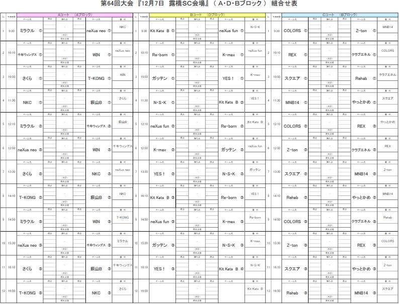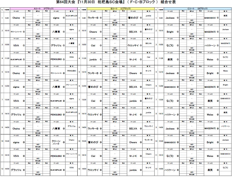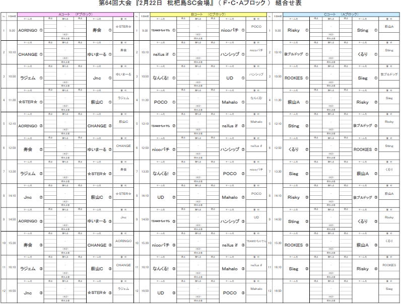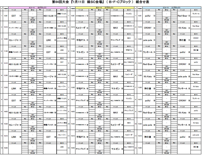 第64回大会対戦表のお知らせ